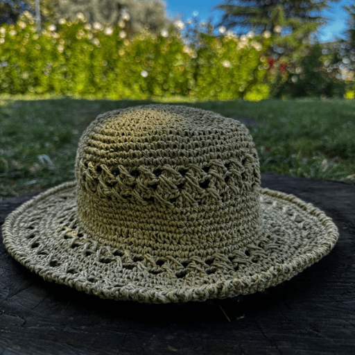 Kapelë plazhi e punuar me grep nga kashtë natyrale, me teksturë të ajrosur dhe formë elegante që ofron rehati dhe stil në çdo hap. Përmasa dhe ngjyra realizohen sipas porosisë suaj, duke e bërë këtë kapelë perfekte për ditët me diell dhe shëtitjet verore.